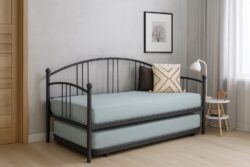 מיטה כפולה. המיטה התחתונה יכולה להפתח ולהתרומם לאותו גובה של המיטה העליונה.